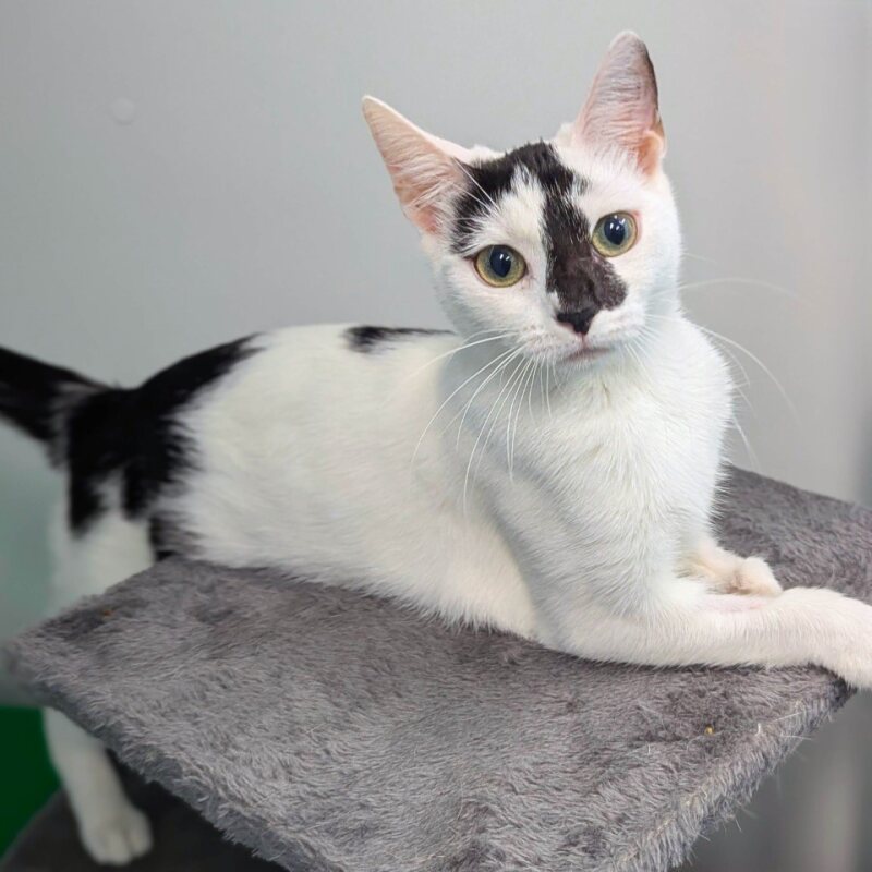 Hi there, I'm Oddball! I'm a 7 month old female Domestic Short Hair kitten. As my name suggests, I'm a unique little gal, full of quirks and personality. I love playing and exploring, and my energy level is sky high - there's never a dull moment with me around! I'm also quite affectionate, and I'm looking for a forever home with someone who'll appreciate my playful antics and snuggle with me at the end of a long day of fun. One important thing to note about me is that I need to go home as a bonded pair. I've got a furry friend - Domino - who I just can't live without. We're two peas in a pod and promise to double the love and joy in your life. I'm best suited to a home with someone who is 6 years or older, as I'm still a young kitten and need a bit of guidance. A home that is peaceful sounds ideal for both me and my sister as we can be a little bit shy around new people and love to have our own space. Trust me, once you meet me, you'll see I'm the perfect mix of fun and sweetness. Looking forward to meeting you soon!