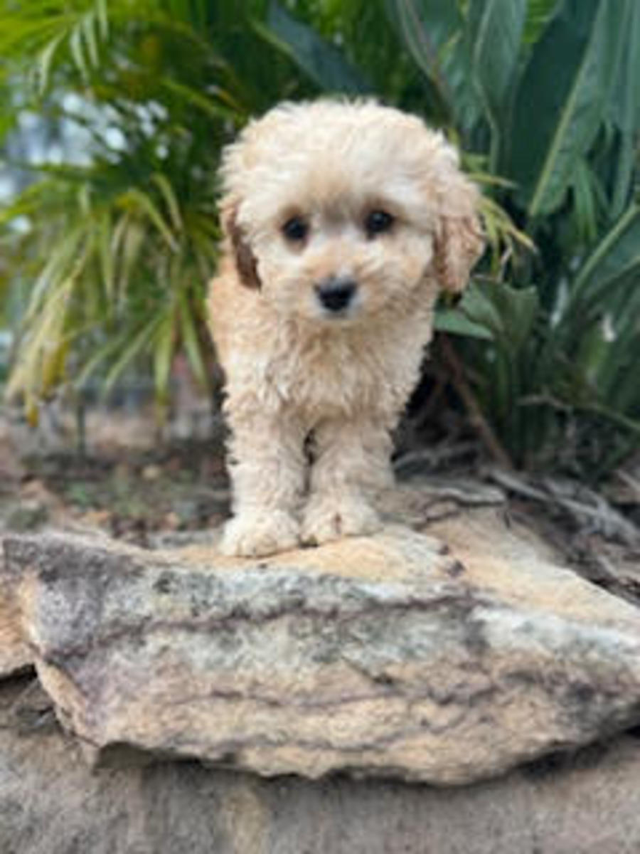 Callie is an 10 week old Cream Cavoodle. Callie is a fun loving, energetic, playful little girl. She has bounds of energy and will need a home with a yard to run around and explore. She loves to play with her other brothers and sisters at the Waggy Tails sanctuary. She thrives on enrichment playful games and her toys. Callie has been working on her toilet training and doing very well.