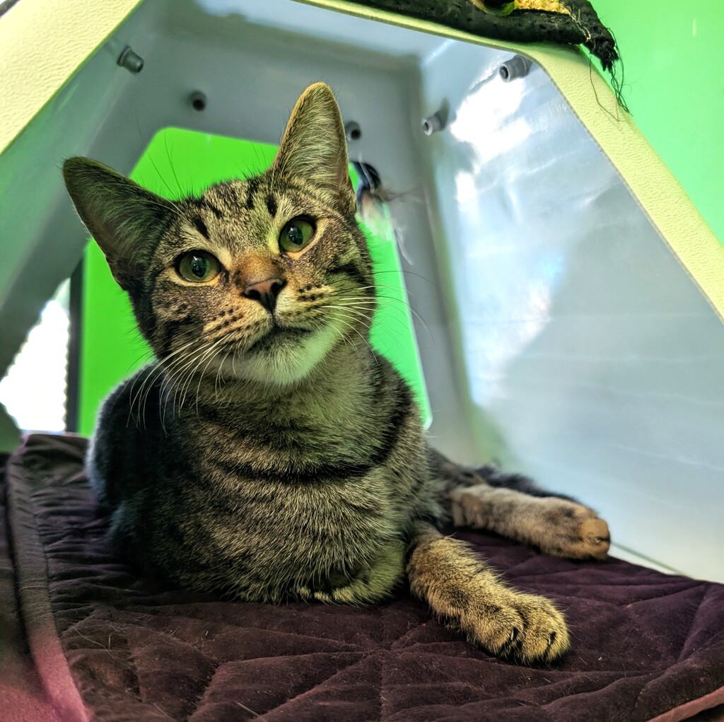 Meet Choo, the laid-back charmer who's as comfortable around people and may appreciate a friendly feline companion. Whether you're offering a gentle pat or just relaxing nearby, Choo's happy to share the moment, purring contentedly as he soaks up all the love. Not one to demand attention, he's just as likely to sit back, relax, and observe the world - until, of course, a tasty treat comes into view. Then, he's all in! If you're looking for a sweet, easygoing companion who'll happily share your space (and a few snacks), Choo might just be the perfect addition to your home.