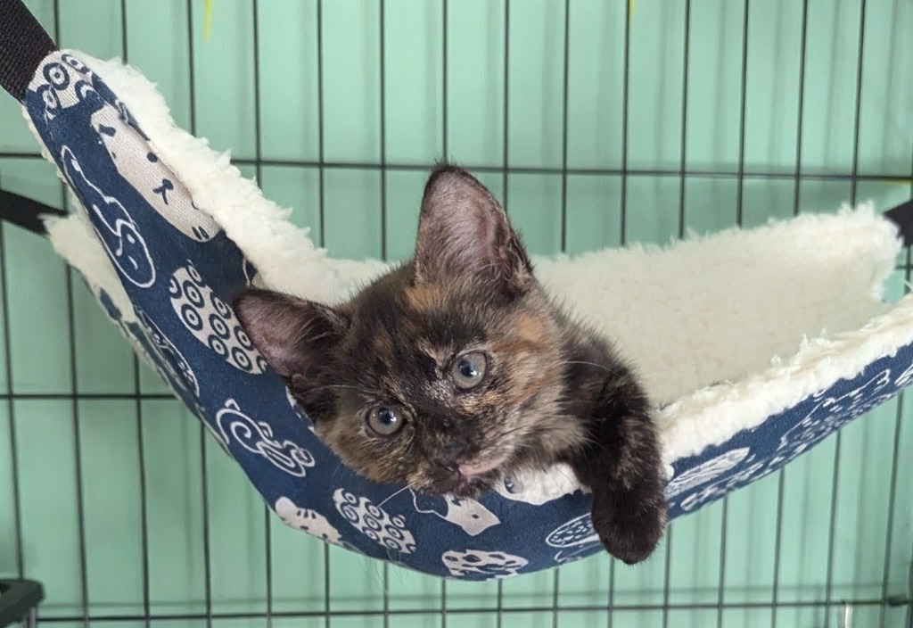 Say hello to Nova, a gorgeous tortoiseshell kitten with a personality as vibrant as her coat! This playful little explorer is full of kitten energy and loves to chase toys, and zoom around the house like a furry comet. But once the fun winds down, Nova's soft side shines through.