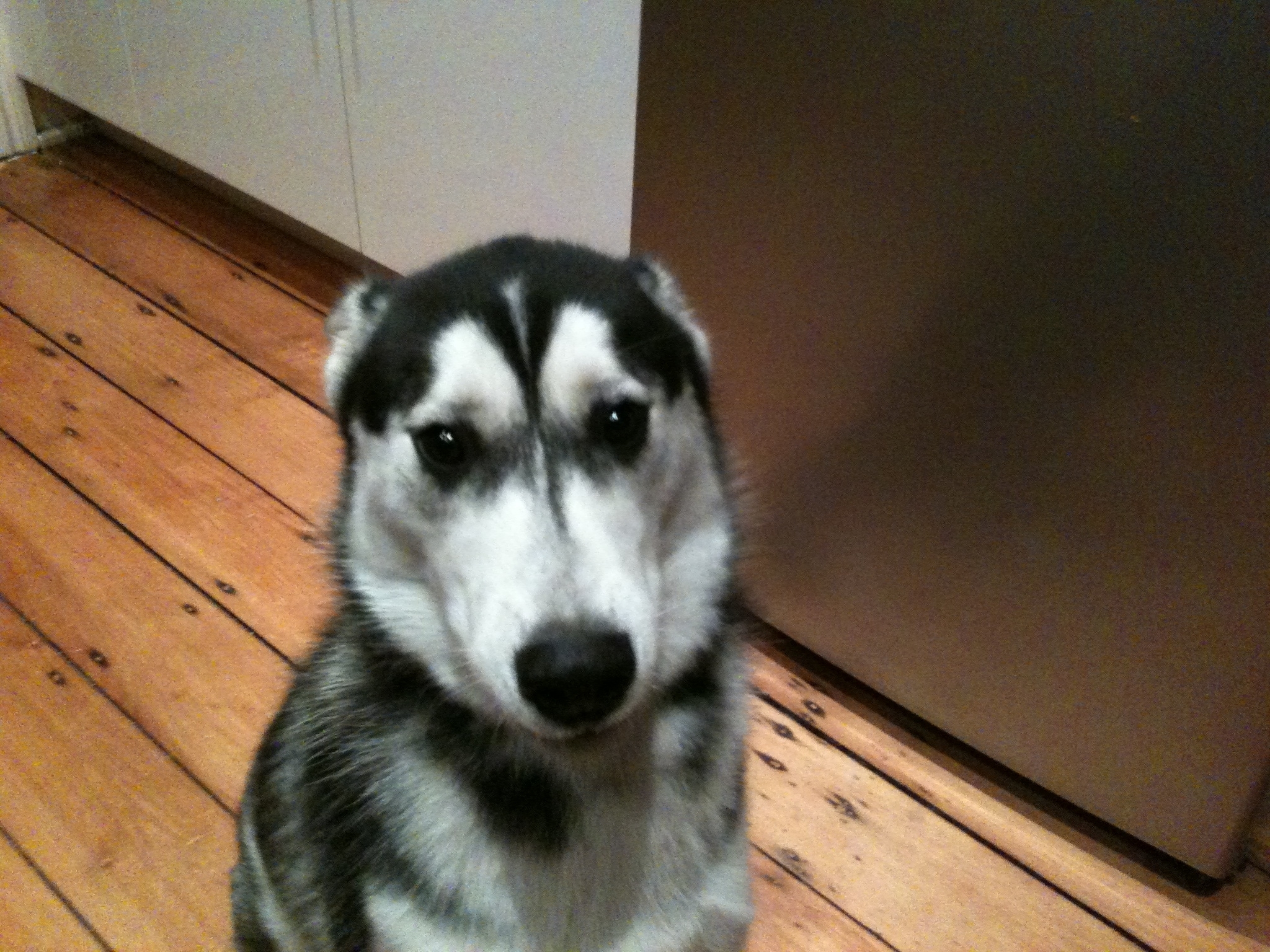 he is not used to being around small children-he is not aggressive at all, but is very strong so if there are children, they would need to be older. Huskies are a specialised breed so some knowledge of the breed is important