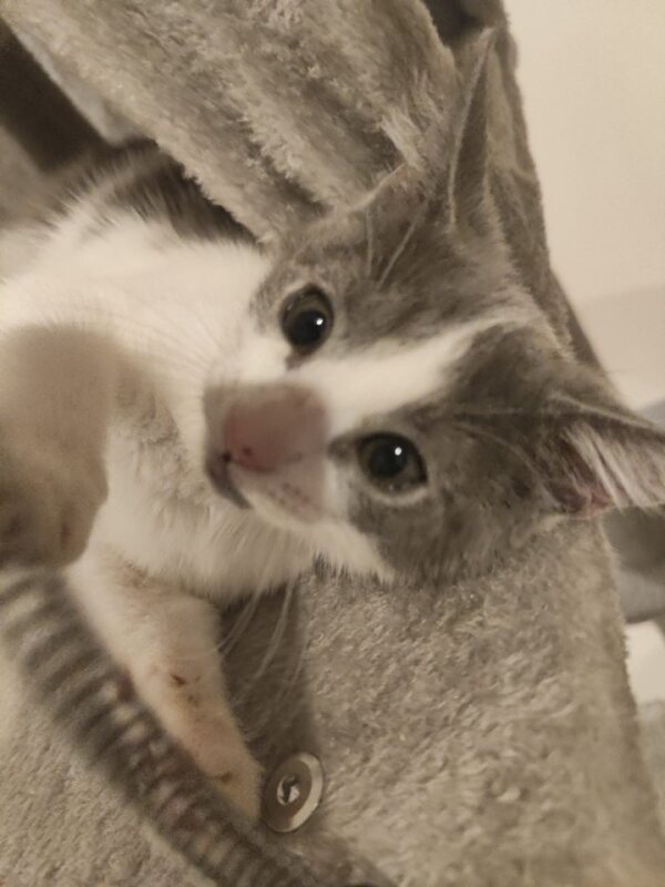 Hello there, I'm Wilma! I'm a 2-month-old female Domestic Short Hair kitten with a playful spirit. When I'm not busy exploring every nook and cranny, I enjoy a good snuggle session. I have to admit, I can't resist a good toy, especially those with feathers and bells. They're just so fun to chase around! I'm pretty tiny right now, but don't worry, I make up for it with a big personality. I'm a little ball of energy, always ready for a play session. But don't let my playful side fool you, I also love to cuddle. There's nothing better than curling up in a warm lap for a nap. I'm still quite young, so I'm learning new things every day. I'm pretty smart, too. I've already figured out where the food comes from and how to use my litter box. I can't wait to find my forever home. Will you be my new best friend?
