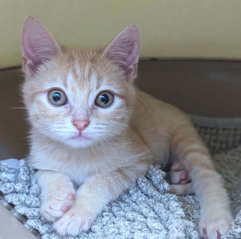 Hello, future best friend! My name's Tom, a lively 2-month-old male domestic short hair kitten. I'm looking for a loving home to grow up in and explore my kittenhood. I'm full of curiosity and energy, always ready for playtime and fun adventures. I hope you have lots of toys and space for me to roam! I'm a sociable little guy who loves to be around people. I'm still learning about the world, so I'll need a patient and caring owner who can help me navigate my way. I can be a bit shy at first, but once I get to know you, I'm a friendly and affectionate companion! I promise to bring joy and laughter into your life with my playful antics and charming personality. All I ask for in return is your love and care. So, are you ready to add a little whiskered magic to your life? If yes, then I can't wait to meet you and start our purr-fect journey together!