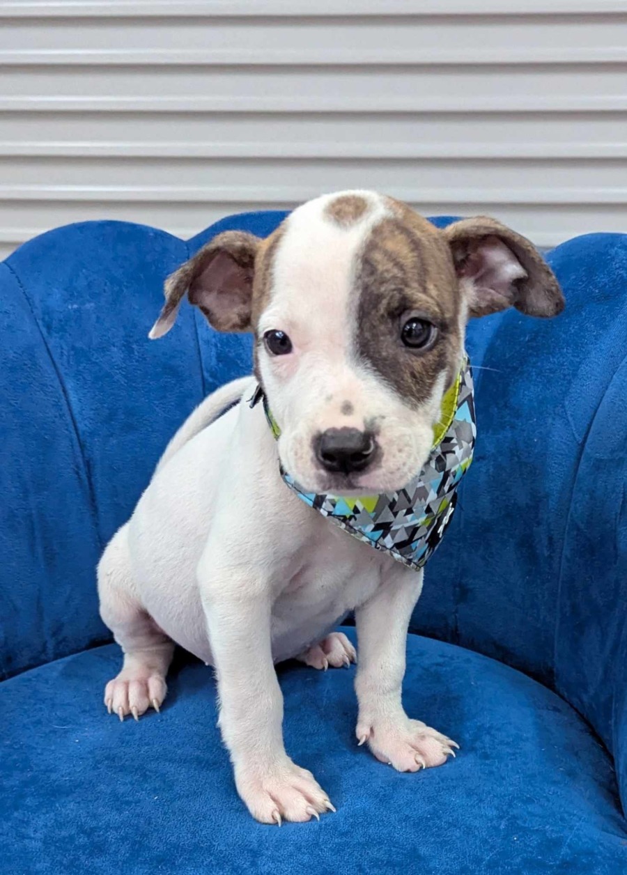 Chewbarka's mum is quite a small Staffy & his dad is either an English Staffy or a Mastiff. Given their current size we are leaning more towards dad being the English Staffy, however if the father is the Mastiff, his name is Bruno & he is also available for adoption with us. Chewie was born 13th January 2025.