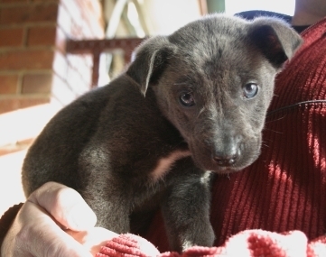 I am a cuddly little blue kelpie puppy who loves to play! i am in a foster home with two little boys and they play on the lawn with me and it is so much fun. I'd like a forever home of my own though, preferably an active person or family who will take me for long walks and play training games with me. My adoption fee includes nsw lifetime registration as well as my vetwork