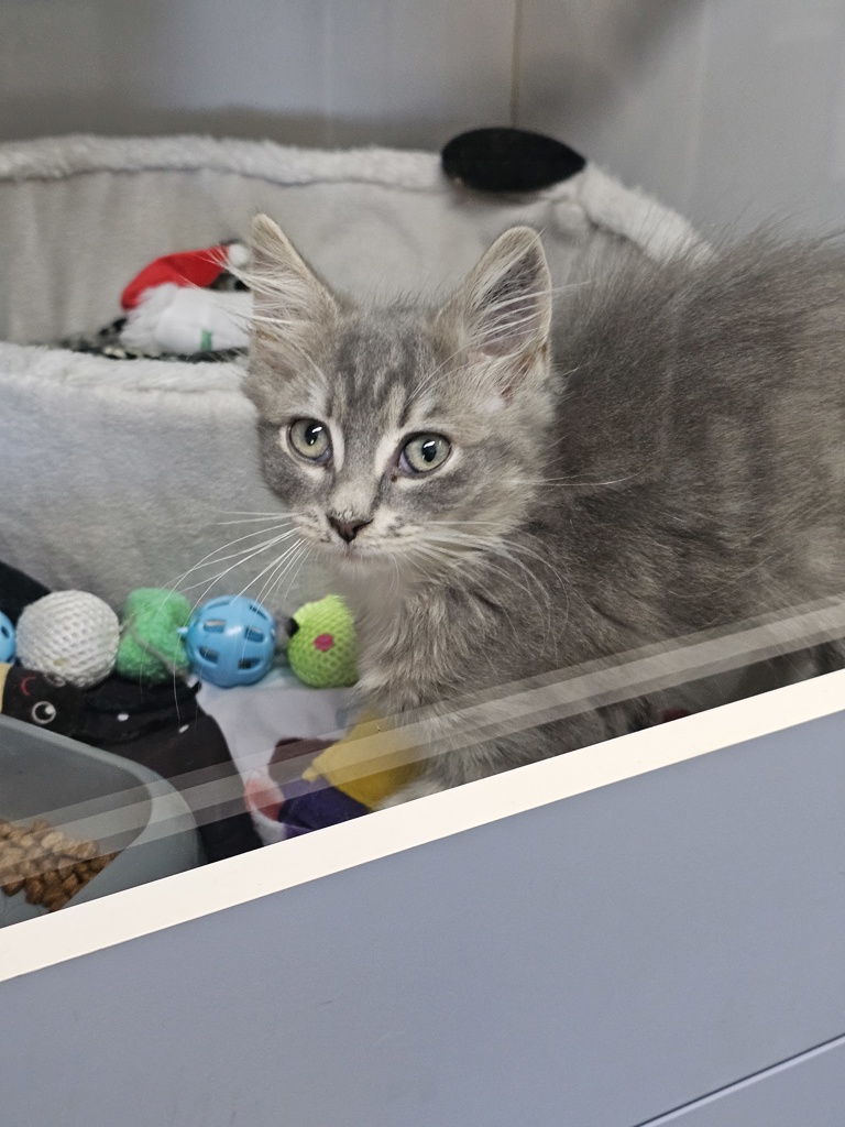 I have perfected the art of the irresistible purr. It's like my secret weapon for getting all the cuddles and chin scratches I could ever want. Life's just one big, exciting string of moments, and I'm here to make every second count - whether I'm chasing my tail or sharing some purr-fectly quiet time with my favourite humans. So, if you're up for a bundle of furry fun and a lifetime of companionship, please consider adopting me!