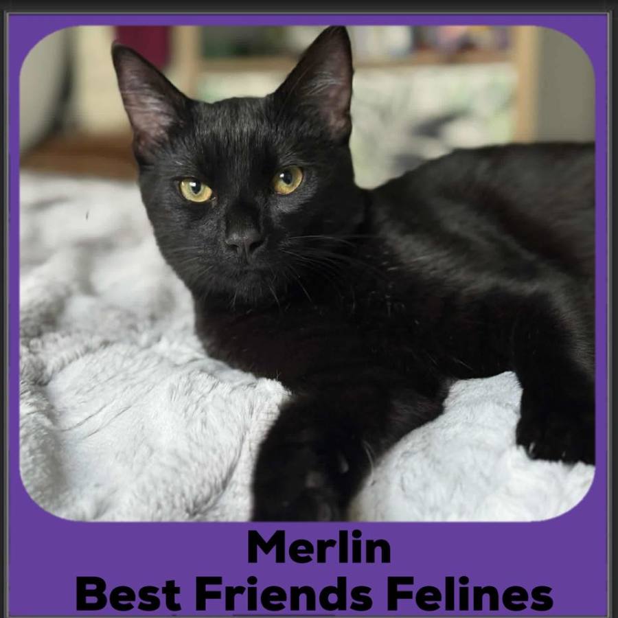 Merlin is an absolute joy for those who love affectionate, chill companions. With a sweet, approachable nature, he is always ready to snuggle, making him a fantastic choice for anyone looking for a loving and serene cat. Not just a black cat, but a lucky companion, Merlin is bound to bring a little extra magic into your life.