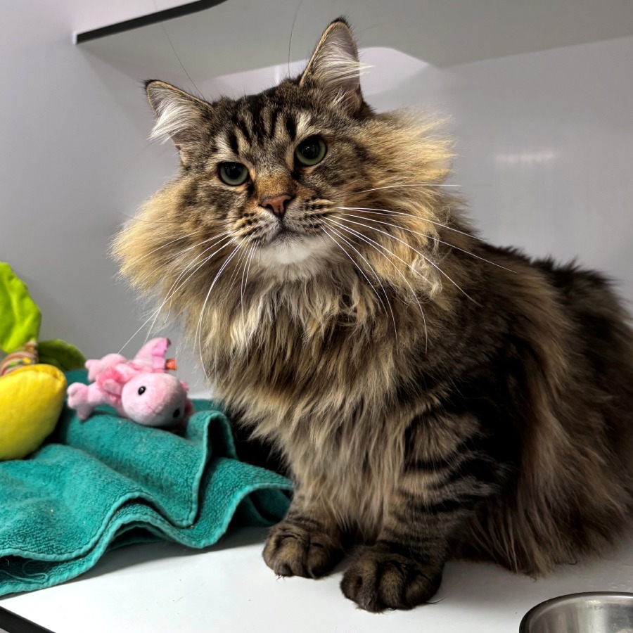 Meet Norman, a strikingly handsome feline who is not just a treat for the eyes but also a loving companion full of charm. With a preference for the ladies, Norman knows how to make a special connection. That said, he is still quite friendly with men, making him a versatile addition to any home that appreciates a touch of feline elegance.