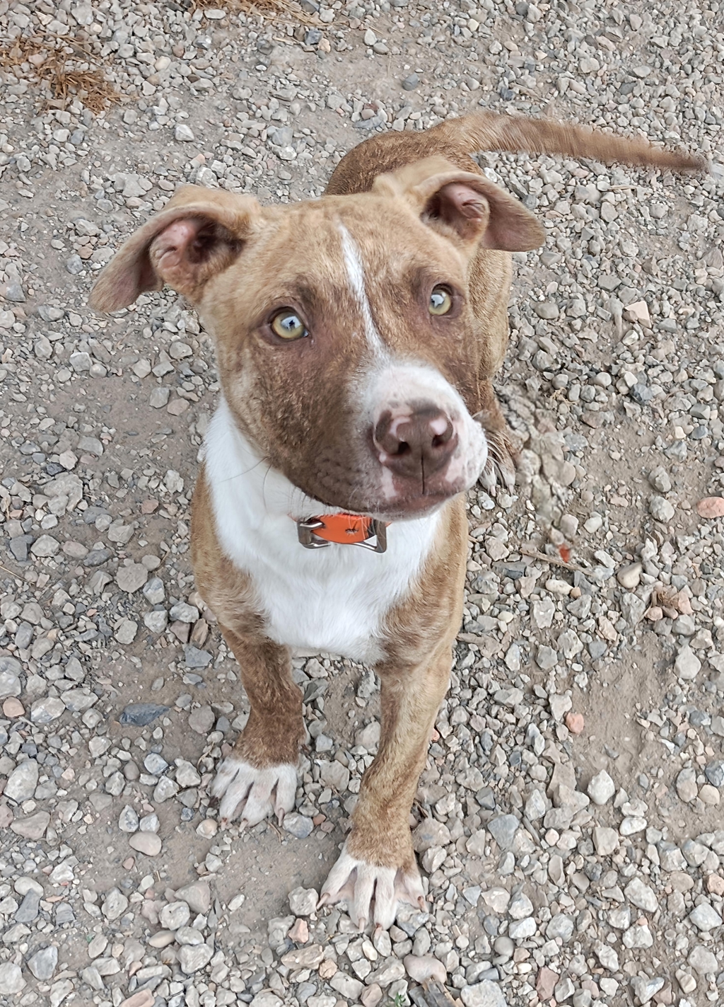Meet Pebble, our delightful 16-week-old male Staffordshire mix with a charming brindle coat. This playful little guy has a zest for life that is contagious; whether he's frolicking in the yard or chasing after his favorite toys, he embodies the joy that comes with puppyhood. Pebble's affectionate nature shines through whenever he's around people-he adores human companionship and thrives on the love and attention he receives. His loving spirit makes him an ideal addition to any family looking for a loyal buddy to share their adventures with.