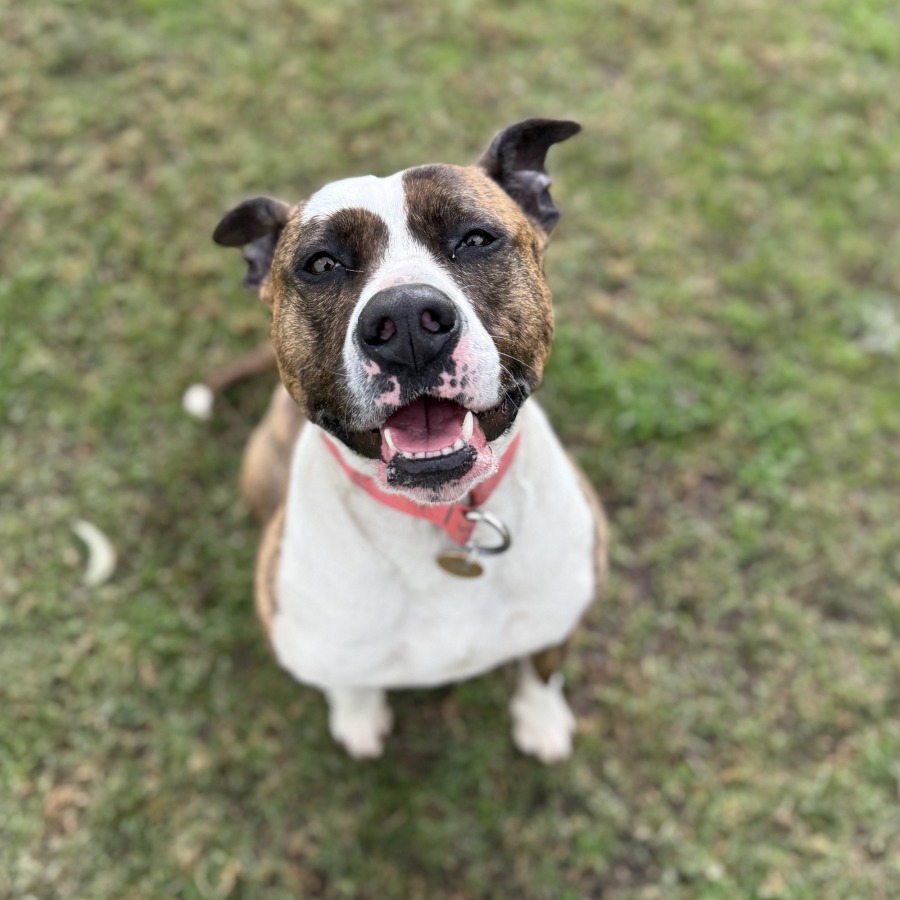 Betty is a sweet girl who likes spending time with her people. She's very enthusiastic about her love for a good ball (or ANY ball, really) and game of fetch, as well as her love for food which makes teaching her new tricks a breeze!