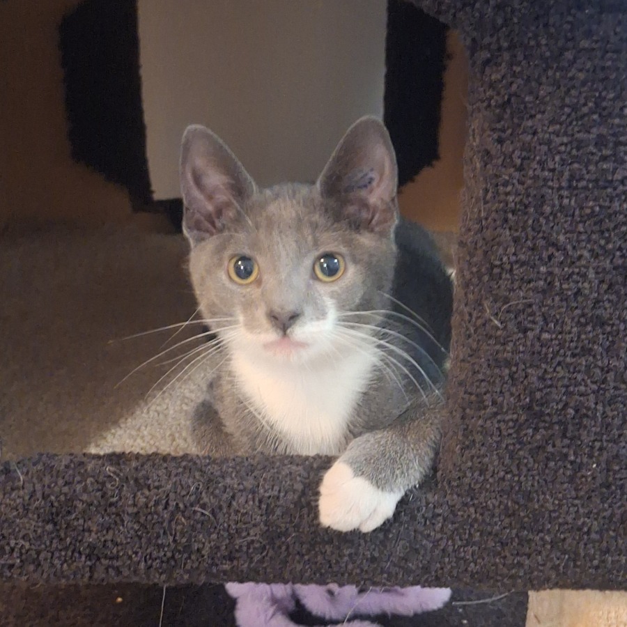 Willis is an adorably handsome little guy that just wants you love and attention! He will happily curl up in your lap for a snooze and a nice chin scratch and then take on the cat tower or a wrestle with his kitty mates!