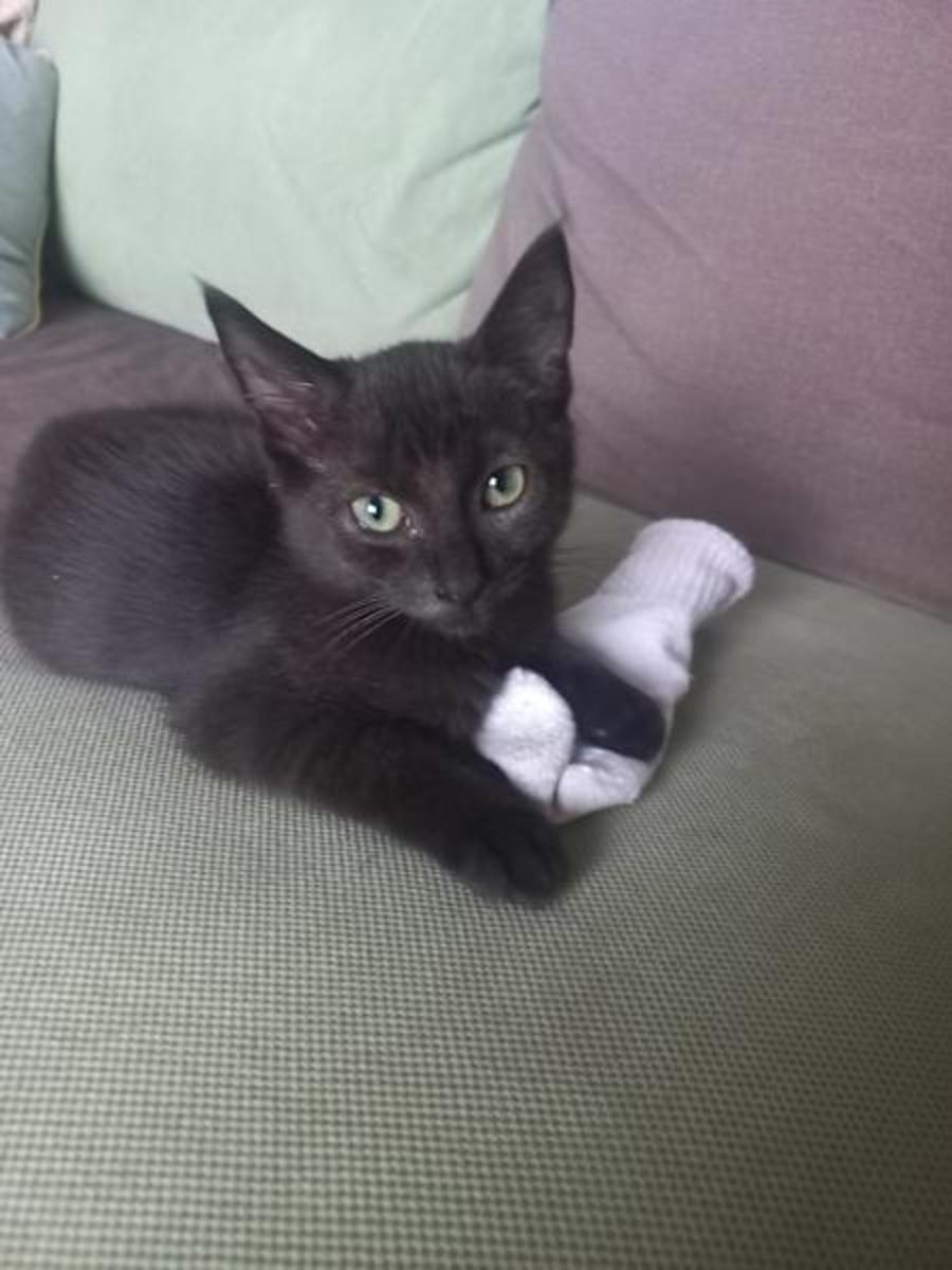 Jaffa is a sweet boy, loves to play and cuddle, he tends to sleep on his back with his paws in the air. He spends his day with Ginny and Fergus and getting into mischief with them.