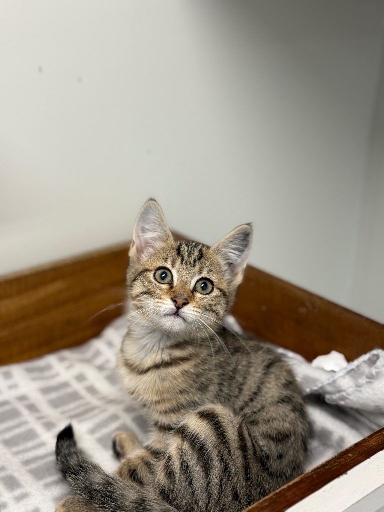 Sarabi and her siblings were born in our care as part of our Last Litter Program, and once old enough they all went off to foster care to learn the ways of being domestic cats. Say hello to Sarabi, the queen of cuddles and the life of the kitty party! This stunning little feline is as beautiful on the inside as she is on the outside. Playful, loving, and full of personality, Sarabi thrives on affection and adores being around her feline friends. She’s the kind of kitten who will chase a toy mouse one minute and snuggle up with her buddies, or you, the next. Sarabi has a gentle soul and a playful heart, always ready to explore her world or curl up in a sunny spot for a well deserved nap.