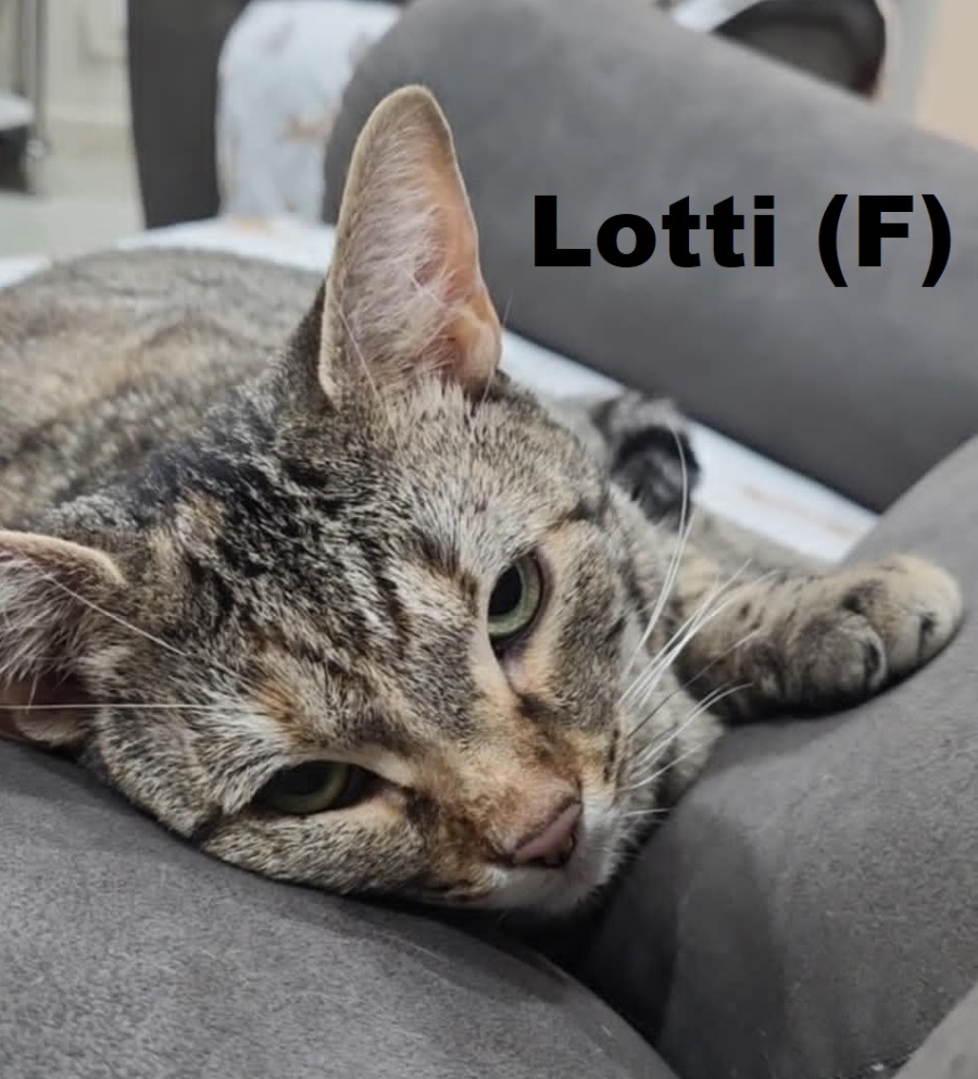 Lotti is a very independent miss. Fully vaccinated, microchipped and desexed. She is still a bit flighty and is a bit aloof. She gets on with other cats and live a stroke and scratch. However she will enjoy that on her terms. When she has enough she has no problem letting you know. She would do very well as a companion for someone who doesn't have children.