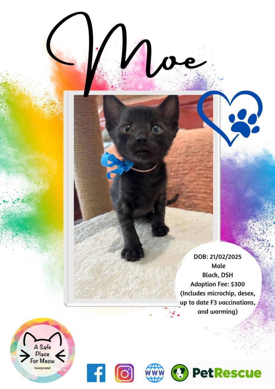 If you're looking for a cat who combines playful energy with heartwarming affection, Moe is your purrfect match. His companionship promises endless love and joy for anyone ready to welcome him into their home.dsh