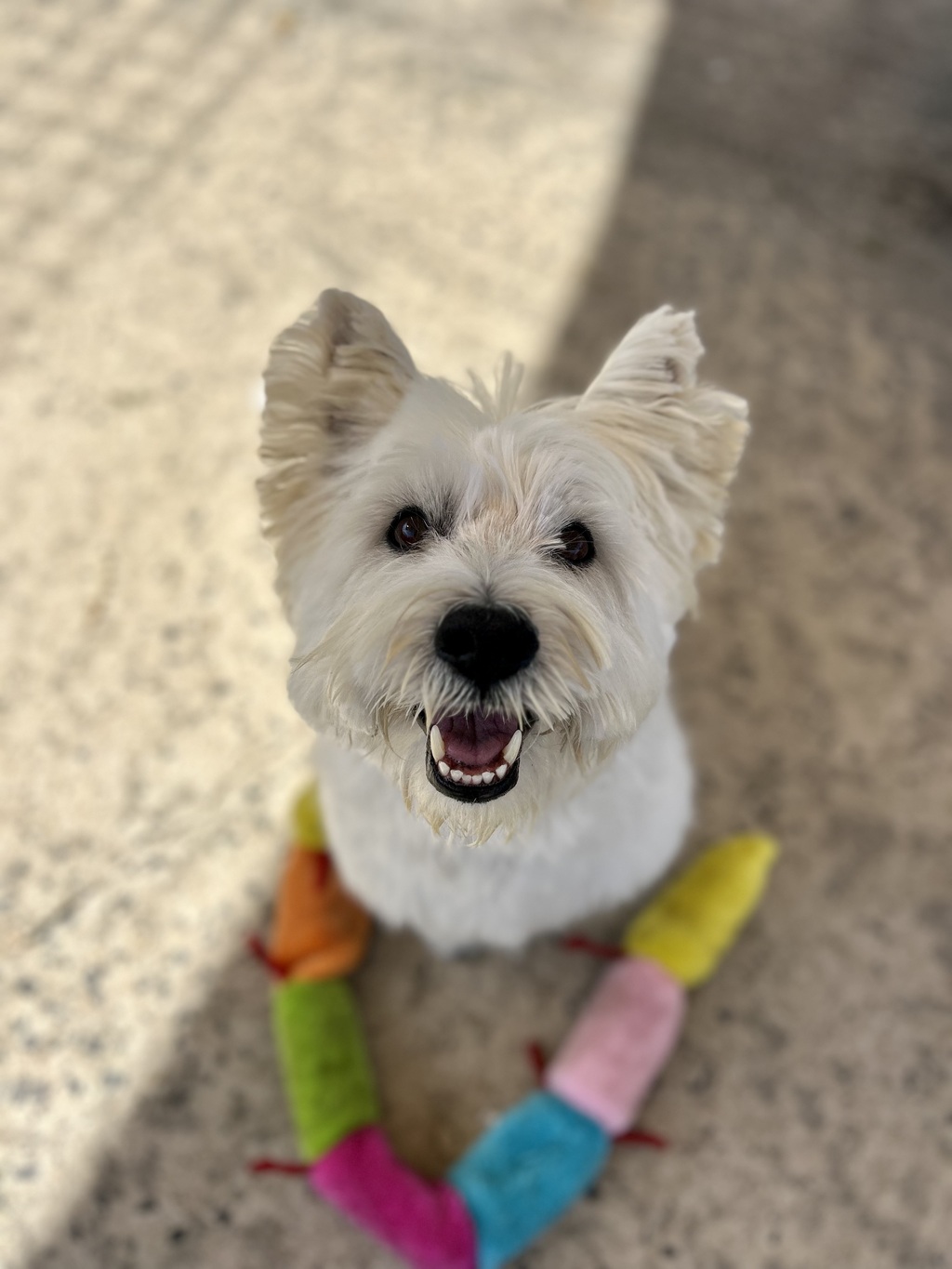 Giga is highly food motivated and responds well to positive reinforcement, making him a promising candidate for ongoing training. He knows "sit," enjoys enrichment activities, and is particularly fond of toys, which he often carries during his daily outings. On walks, he can pull ahead and engages in frequent scent-marking, demonstrating his curious and active nature.