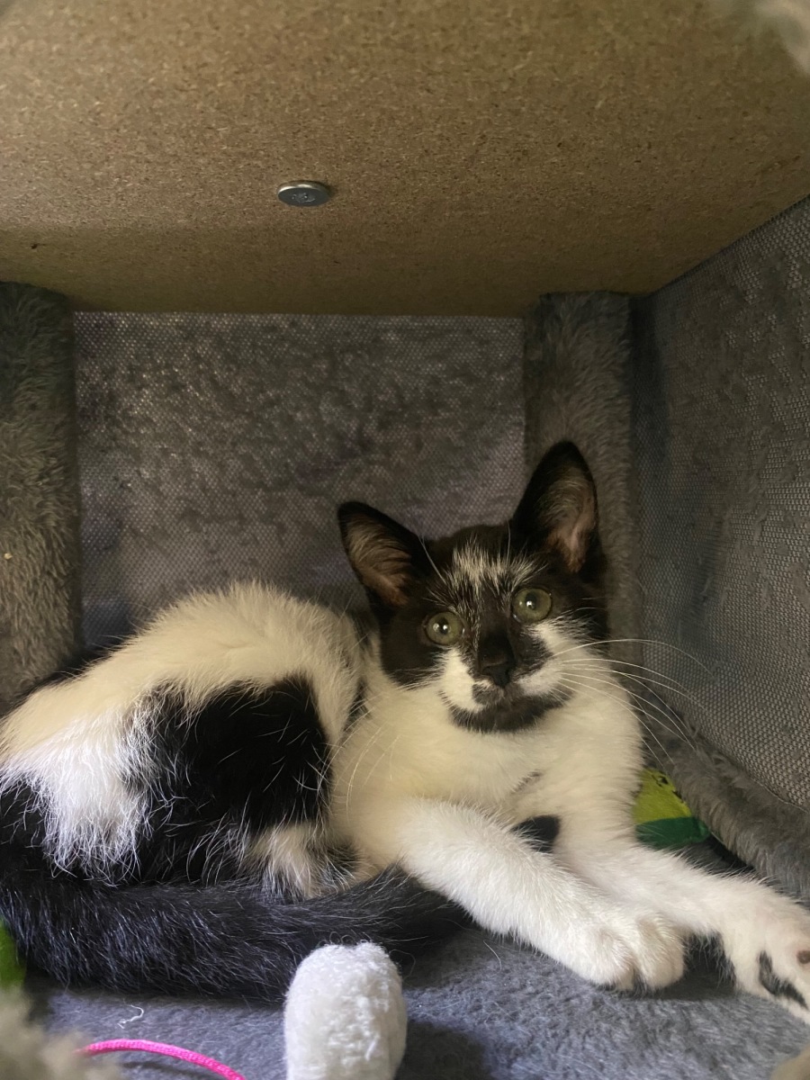 Domino was a terrified stray kitten, who was found on a work site and brought to our emergency clinic, apart from being hungry and a little dehydrated he had a clean bill of health.