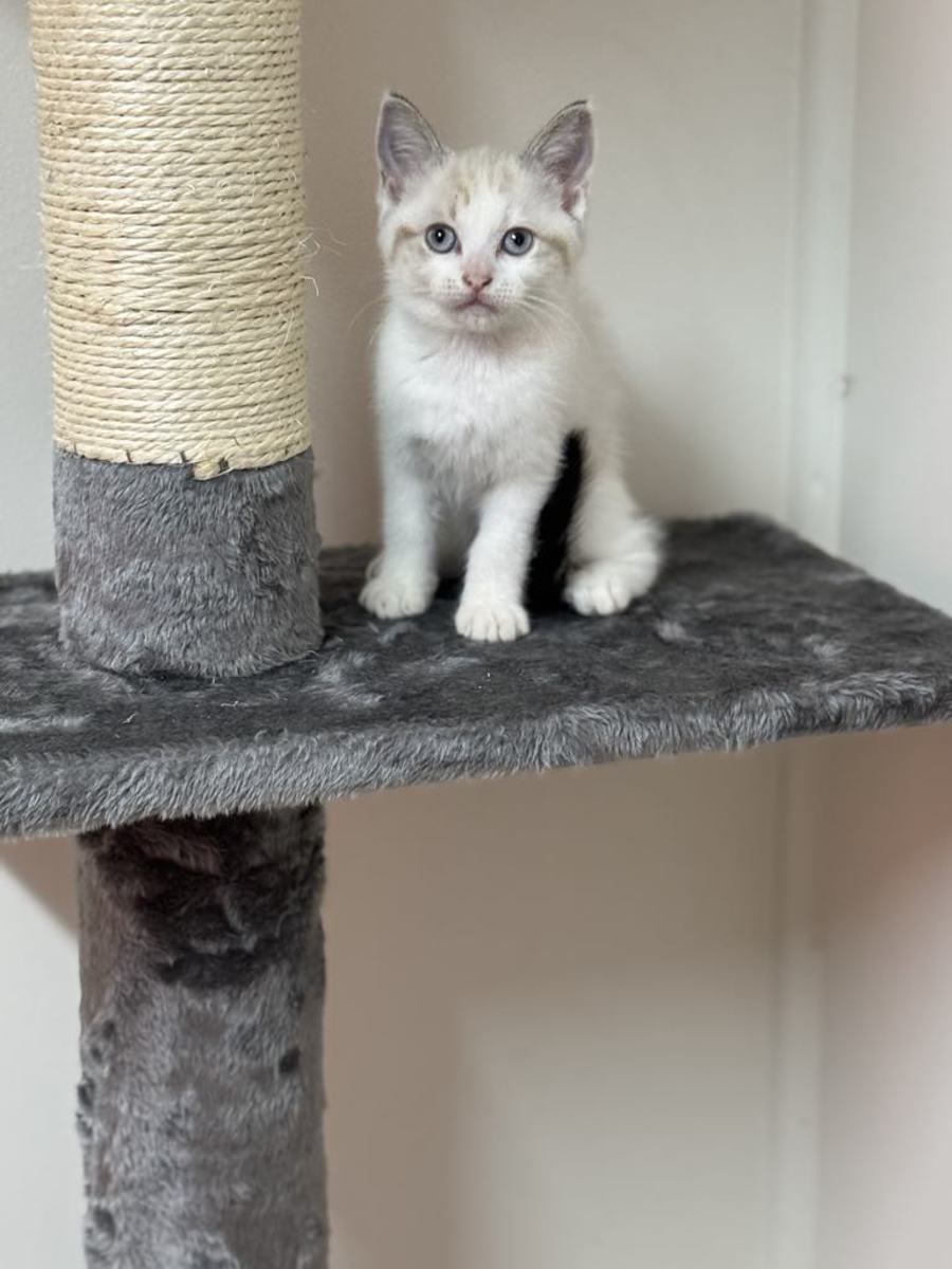 Meet Arabella, a delightful bundle of joy just waiting to join your family. With her sweet and playful nature, she's the perfect companion for anyone looking to brighten their home with a furry friend. Arabella absolutely adores playing with toys of all kinds, whether it's batting around a feather toy or pouncing on a ball. Your afternoons will be filled with laughter and joy as you watch her antics.