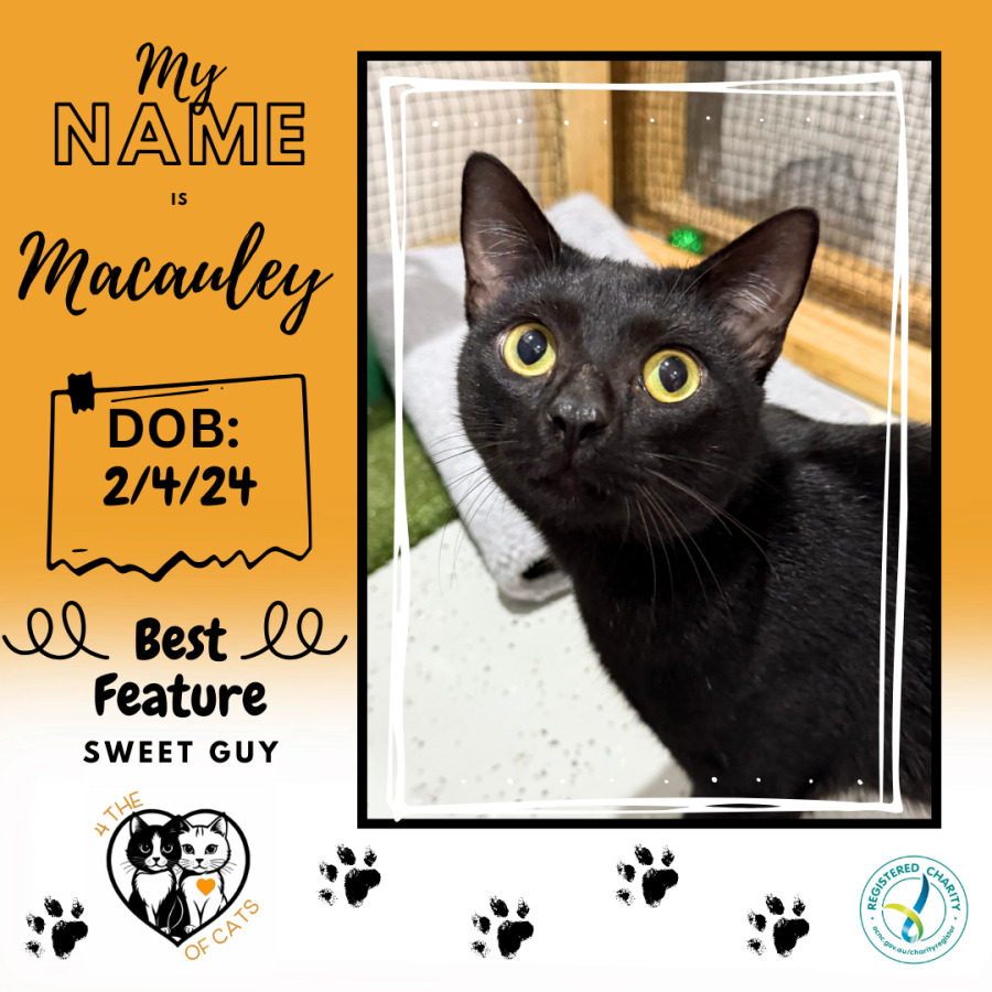 Macauley is cat friendly and made friends with a little kitten while at the pound.