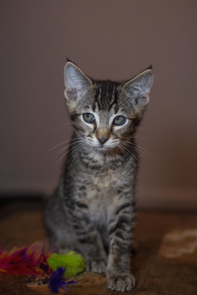 Edgar and his siblings arrived into our care after being brought into us by the team at FreeHearts Animal Sanctuary. Once they had settled in with us, this gorgeous quartet went into foster care where they stole even more hearts than just ours! Edgar is the quietest out of the four, but don’t let that fool you. He is so loving and seeks out attention constantly when he is settled. He will spend hours sitting on your lap snoozing the day away, but loves to play just as much. He is very curious, and will wander off to check out something that interests him. Once he realises he is alone though he does get a bit nervous, and he will call out for his siblings when he finds himself separated from them, so he would be best if he was adopted with a litter mate or going to a household with another cat. He is great with dogs, but a bit indifferent to them compared to his brothers Irv and Quinn. He will be the perfect addition to any household and would be better suited to a home with older children due to his rambunctious style of play. You can meet Edgar and his siblings at our Burnie Adoption Centre.