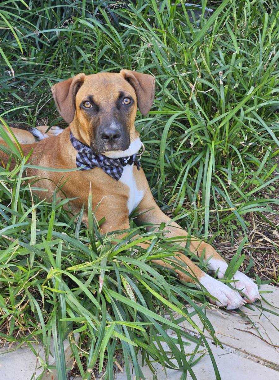 Meet Flynn, the handsome pup who is as sweet and clever as he looks! With his sleek tan coat, white paws, and soulful eyes, Flynn is sure to steal your heart. Whether he's lounging in the sun (one of his favorite pastimes!) or snuggling up, Flynn knows how to make every moment with him special.