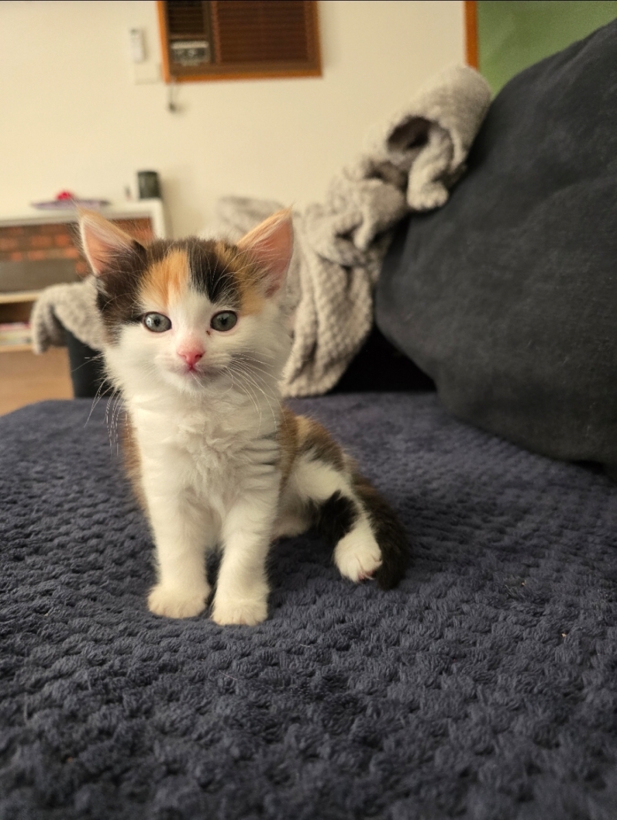 She currently lives with other cats and kids. We also think she could get used to living with a dog.