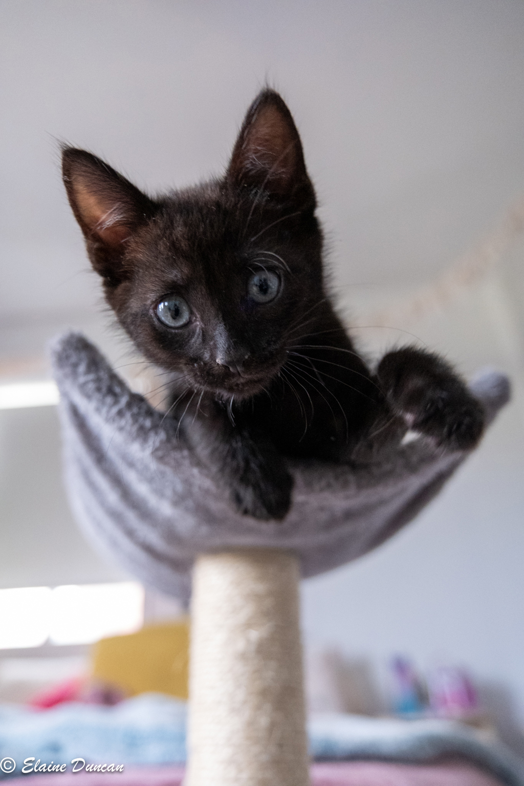 While Squirt enjoys playtime, he maintains a balanced energy level. He engages in standard kitten activities, such as chasing foil balls and small soft toys, but is equally content with lounging and receiving affection.