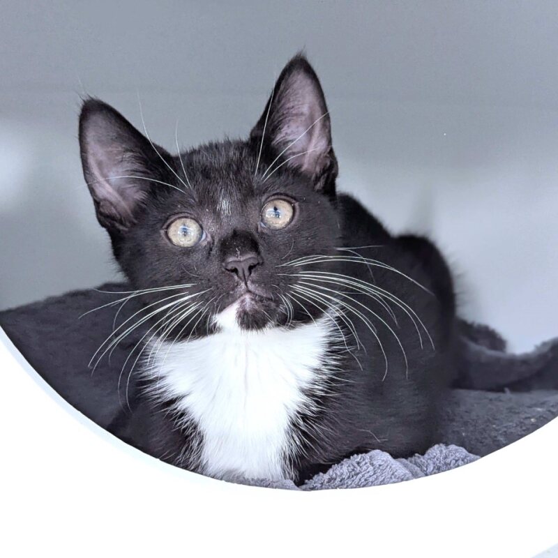 My favorite pastime is chasing a ball of string or batting at a toy mouse. I'm still learning about the world around me and I'm eager to explore my new home. I'm also very affectionate and love to curl up in a warm lap for a nap. I'm looking for a family who can give me lots of love, playtime and snuggles. I promise to return the favor with purrs and lots of fun. Will you be my forever home?