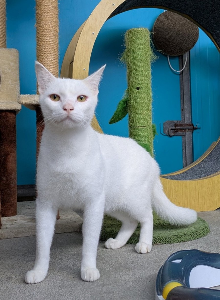 Buzz will need to be an indoor only kitty due to his fair features and of course his willingness to follow just about anyone who will listen to his rambling!