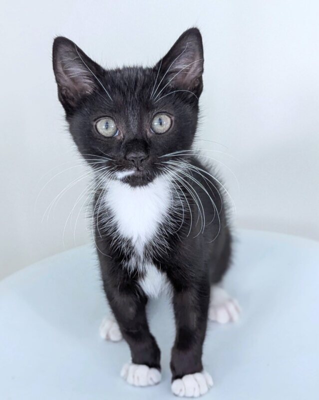 Hi there, I'm Bootsie! As you can see, I'm a handsome little Domestic Short Hair kitten and I'm just 2 months old. I'm a boy full of energy and curiosity. I've got a playful personality that's sure to bring joy to your home. I love to explore, climb, and chase after toys. I'm a social little fellow and I get along well with other kitties. I'm also a huge fan of cuddling and purring - I promise to be the perfect little lap cat once playtime is over. I'm still learning about the world and I'd love to explore it with you. Could you be my forever family? I promise to fill your life with love, laughter, and plenty of adorable antics. Can't wait to meet you!