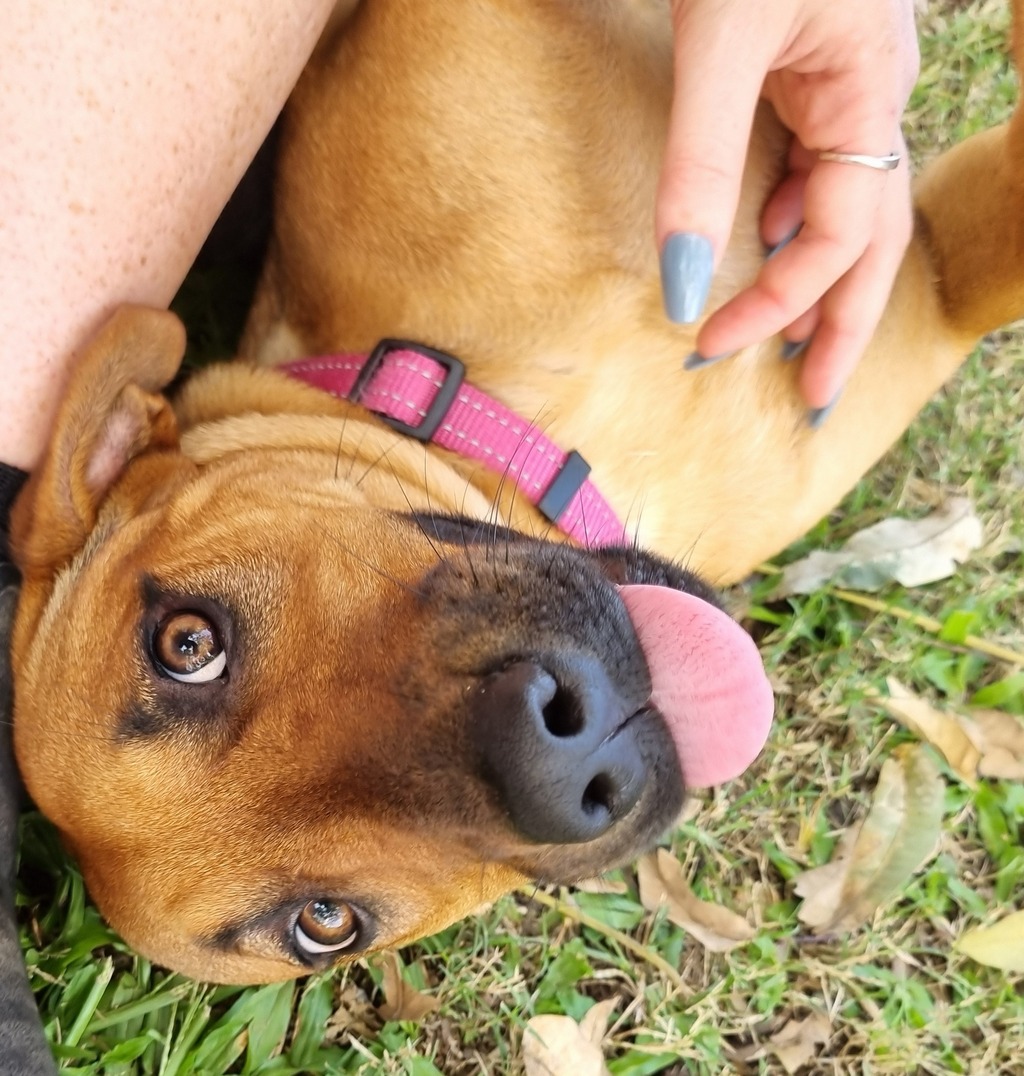 Dora is a sweet young Staffy mix with a gentle soul and a heart full of love. She may be a little shy when you first meet her, but give her just a little time and patience, and you'll see her true colors shine-playful, affectionate, and full of tail wags!