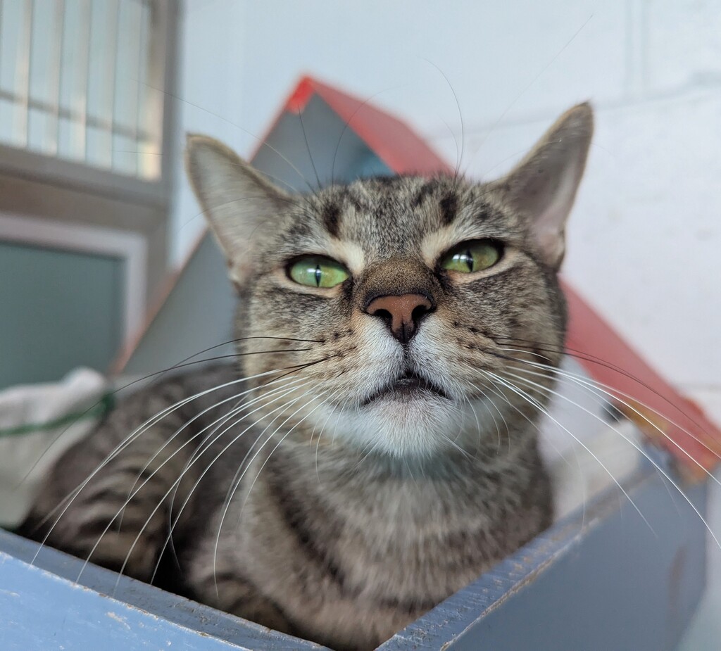 Ally is a gentle, affectionate girl who loves a quiet cuddle and a comfy spot to curl up in. She's been through a lot, so she's still learning to fully trust, but with a little patience and love, her sweet personality shines through.