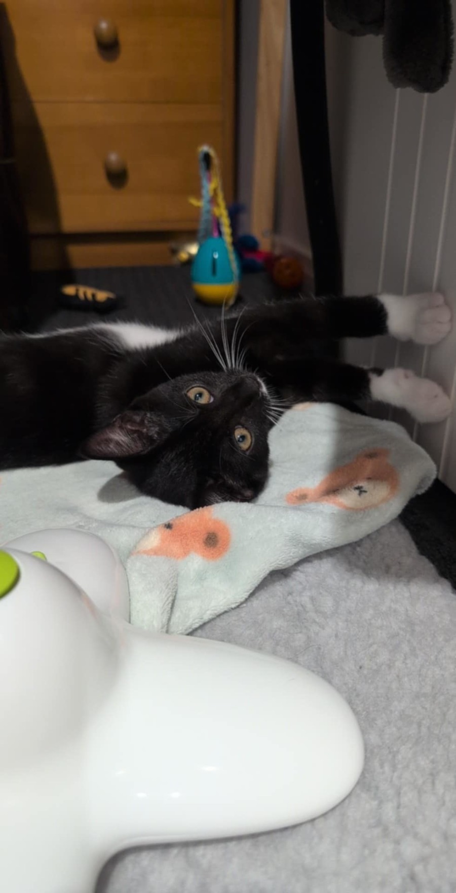 Meet our sweet Pasito. She’s all about cuddles and affection. This little ball of fluff loves to play and chase after her toys, and when the fun winds down, she’ll happily curl up in your lap for a cozy nap. She has a gentle nature and soft purrs will quickly win you over. She’s the perfect companion for someone looking for a calm, loving kitten who enjoys both playtime and quiet moments together.