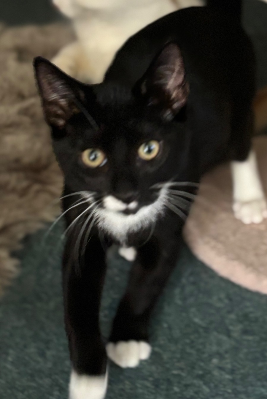 Leighton is the typical tuxedo kitty that takes everything in his stride. He’s not phased by much, is very easily pleased and is generally just an easy kitty to have around.