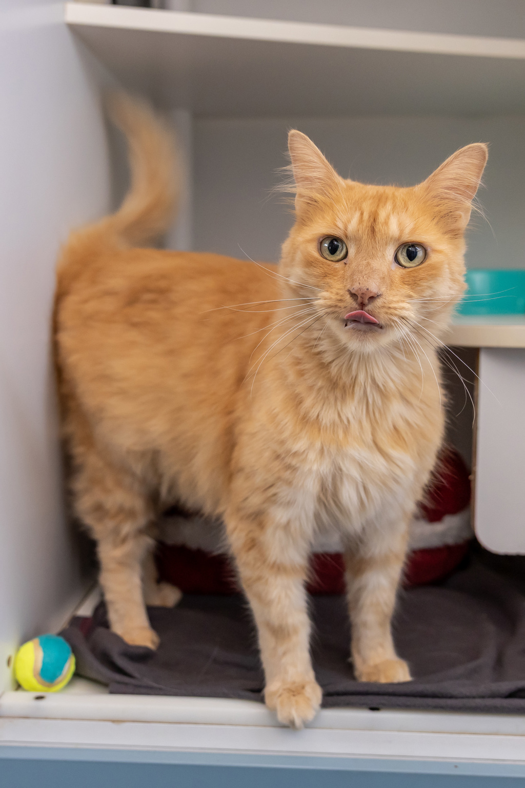 Meet Nimbus - Our confident little ginger charmer. From the moment you walk into the room, Nimbus is ready to greet you like an old friend. He's affectionate without being over the top, always happy to lean in for a head bump or curl up beside you for a quiet nap. If you're after a cat who'll make you feel like the centre of the universe, this golden boy might just be the one.