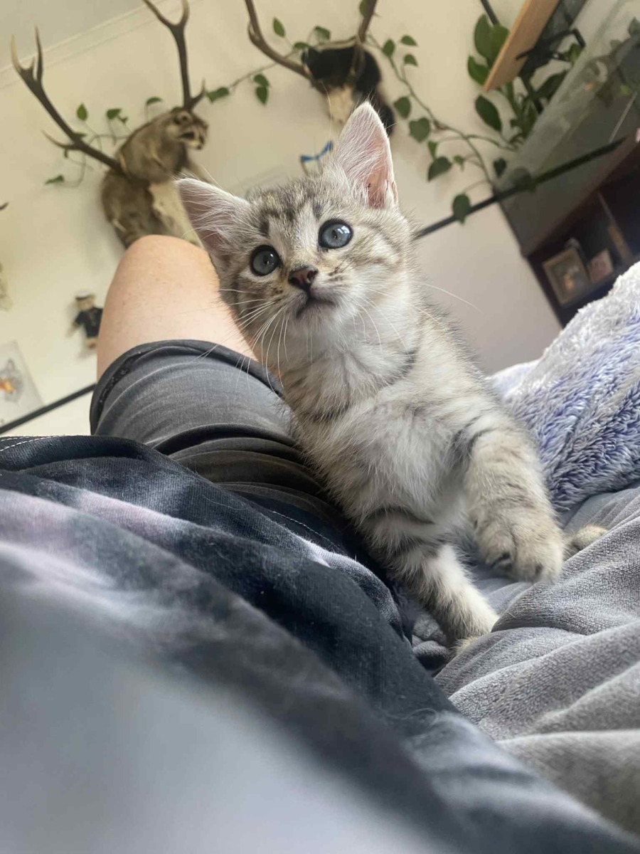Introducing Earl, an adorable 8-week-old Domestic Shorthair with a personality as charming as his playful antics! This little furball is bursting with energy and is always up for a hearty chat, ensuring your days are filled with delightful conversations and laughter. Earl has a knack for brightening up any room he enters, making him a wonderful addition to any home.