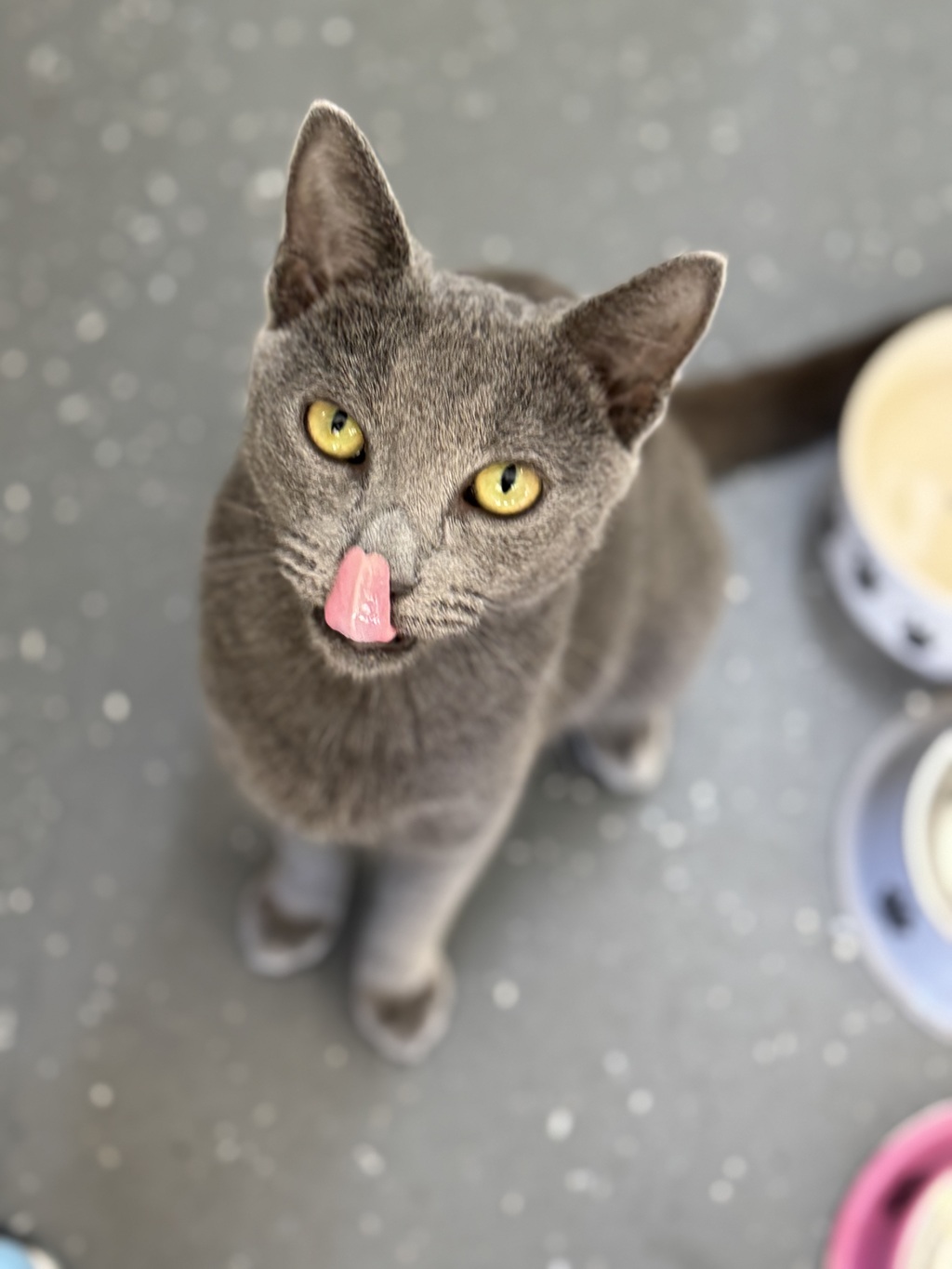 I am the sweetest girl ever! And love to give everyone kisses! I have a lovely personality and would be a great companion for anyone. I have been living with my sister Nibbler, and we are the best of friends; we just sit there and play together and maybe steal each other's food! I am outgoing and playful; and I am quite social, so a home with other cats will be fine if introduced correctly. I think any home life would suit me perfectly.