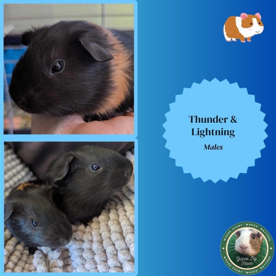 Despite his name, Thunder is the less vocal brother. Lightening however can brighten your day with his wheeks for food and affection.