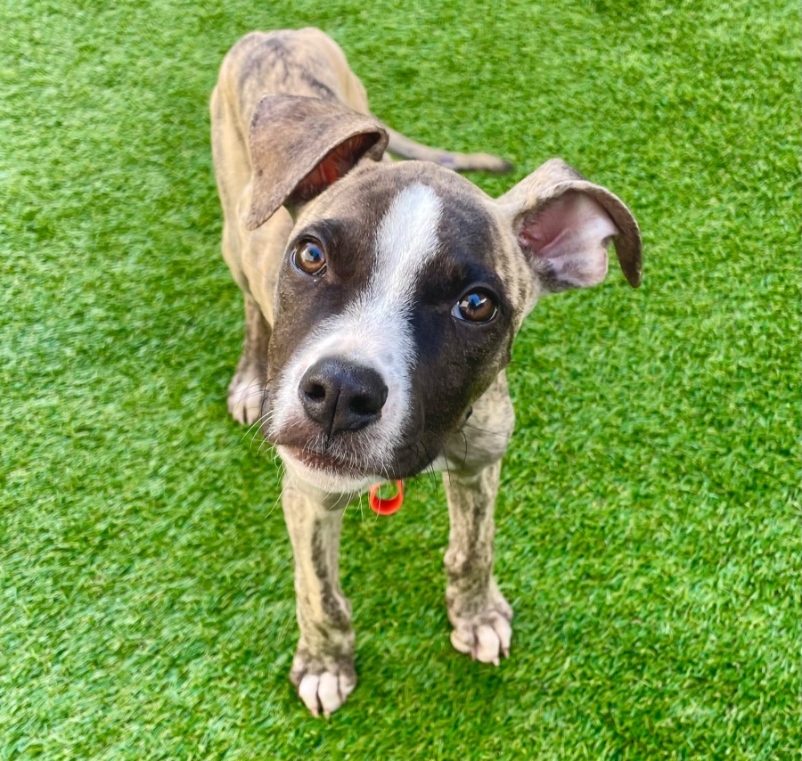 PJ is a 5 month old beautiful pup that has come into rescue after being dumped very underweight into an overnight cage at a rural pound (we have posted a photo of him at the pound ) . We are not sure what breed mix PJ is as he looks a bit like a whippet x staffy We think he has a lot of variety mix whatever he is he is amazing. He only weighs 6 kilo !!