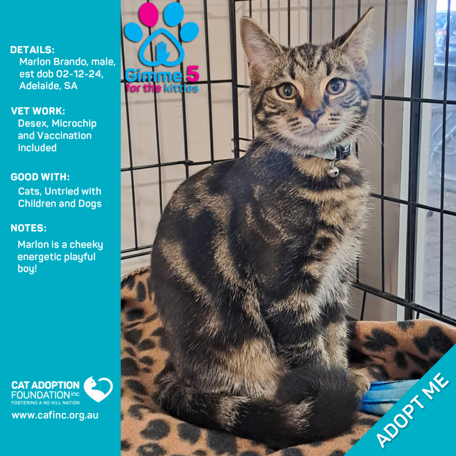 Donate to Marlon Brando at Cat Adoption Foundation Incorporated via Shout