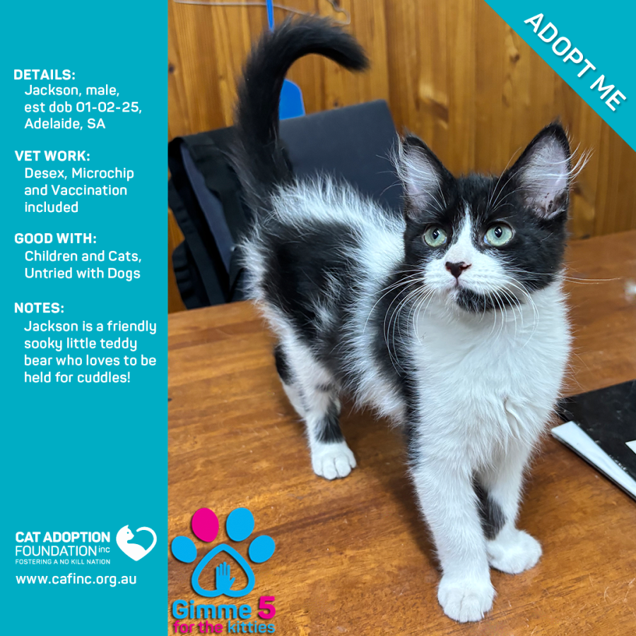 Donate to Jackson at Cat Adoption Foundation Incorporated via Shout