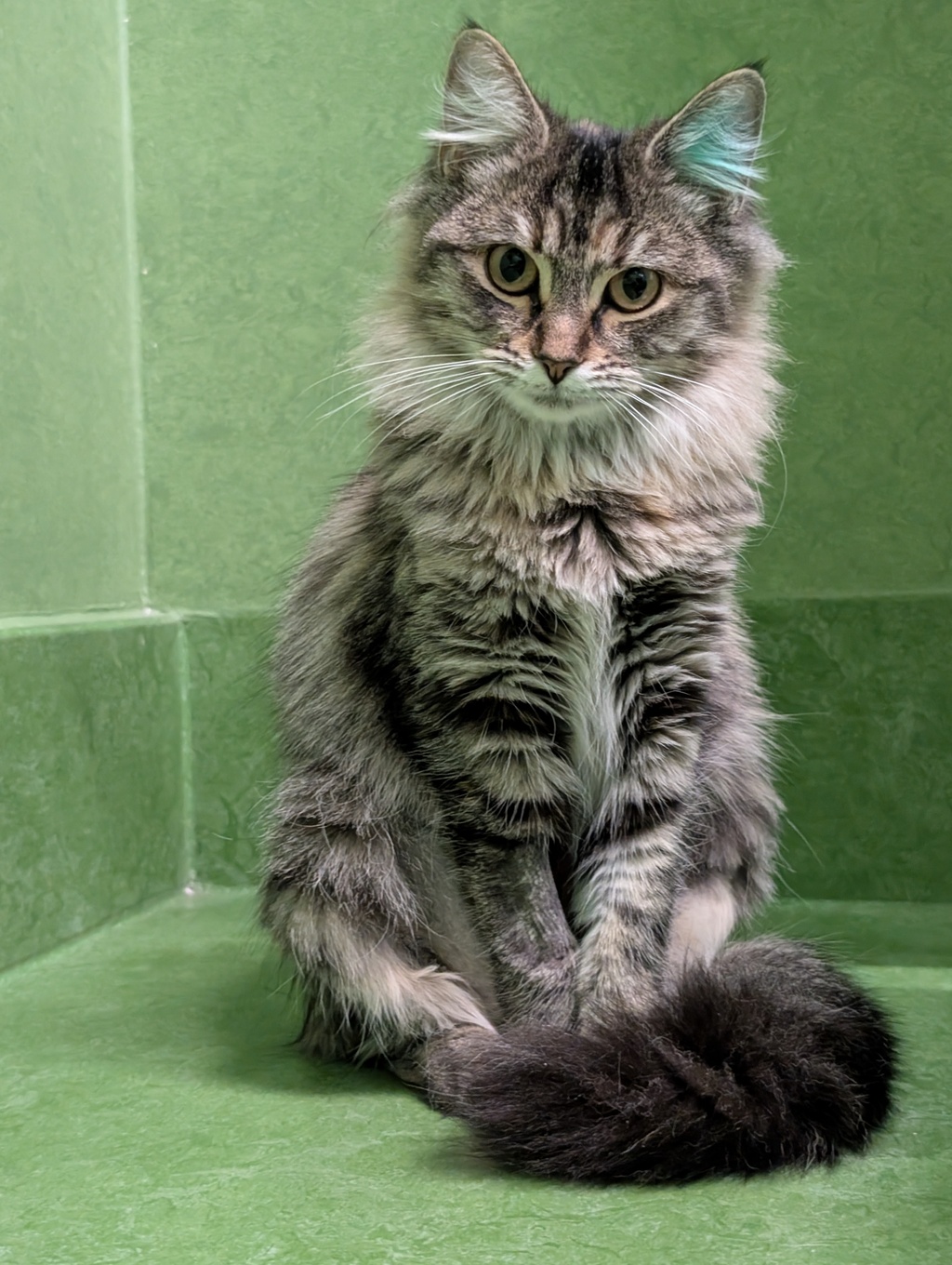 Miss Bumblebee is a gentle girl who is as sweet as her name suggests. She is a loving, affectionate kitty who adores head scratches, cozy nap spots, and quiet company. She'll purr her way right into your heart and is the perfect companion for someone looking for a mellow, snuggly friend. Ready to make your home her hive? Miss Bumblebee can't wait to meet you!
