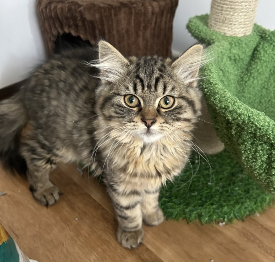 He has such soft and fluffy fur, perfect for couch and bed cuddles! Ramen is a little shy to start off with, so will need a few days in a new home to decompress and feel safe.