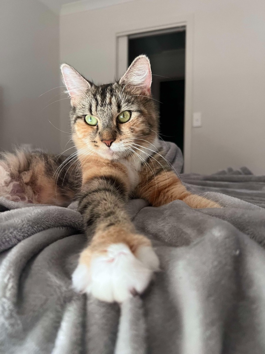 She is a very friendly and social cat who will shower you with purrs, headboops and cuddles. Just a gentle soul who loves love.