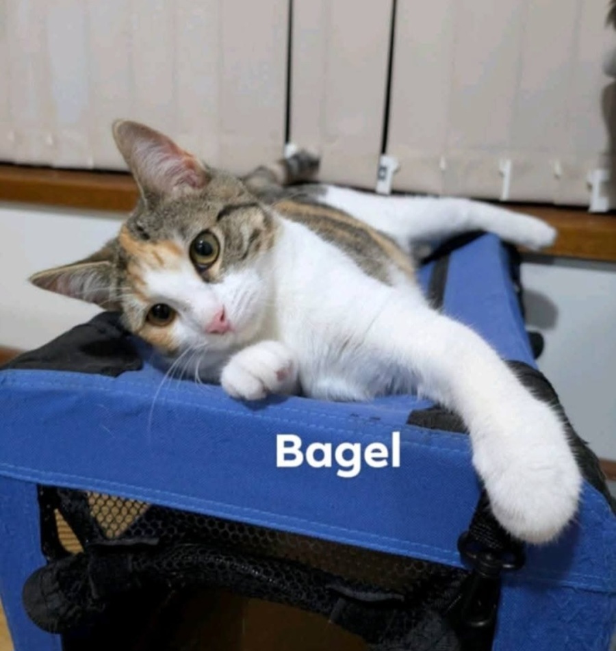Whiskers and Tails Adoptions (registered charity) is seeking adoption for our gorgeous kitten, Bagel (Estimated DOB 4/12/24). She is affectionate and playful. She is fine to be homed with children, other cats and cat friendly dogs. She must be kept indoors for her own safety and she is located in foster care at Salisbury East.