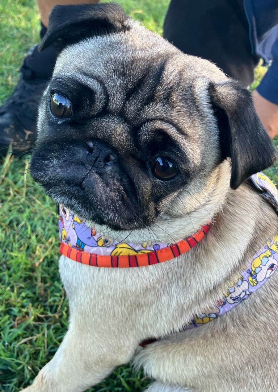 Billie only needs very short walks in the cool of the day and a small, shady garden to potter around in. If you are someone who enjoys a quiet, calm home, is home often and looking for a small puggy companion to enjoy couch cuddles with, Billie may be just the right little lady for you.