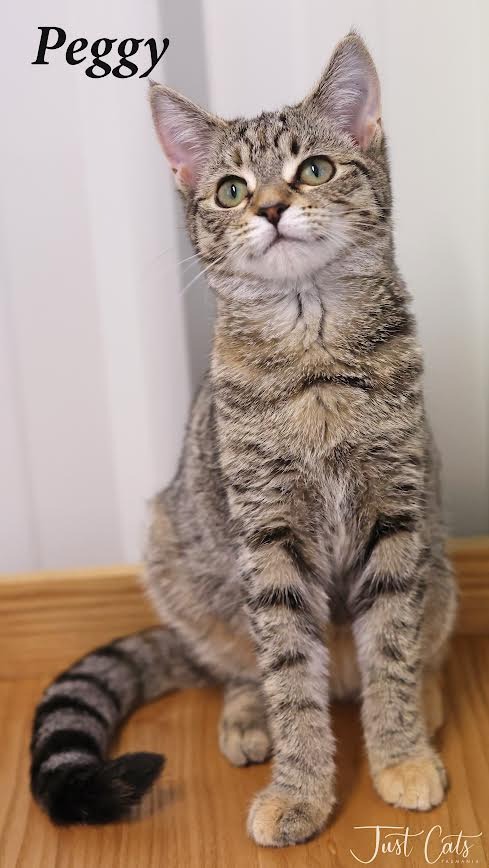 Peggy arrived to us as a trapped kitten from George Town alongside her sister Angelica. Peggy is a gorgeous calico girl who is very independent but loves her people. She will purr loudly when patted, and loves to be picked up and cuddled once used to her environment. If you have any type of rope or string, she will gladly chase you around the house until she catches it! She loves her sister, Angelica, and does well with other cats and kids, untested around dogs but with a slow introduction should do well. If you are looking for a snuggly, laid-back kitten, Peggy is for you, come and meet her at our Burnie Centre.