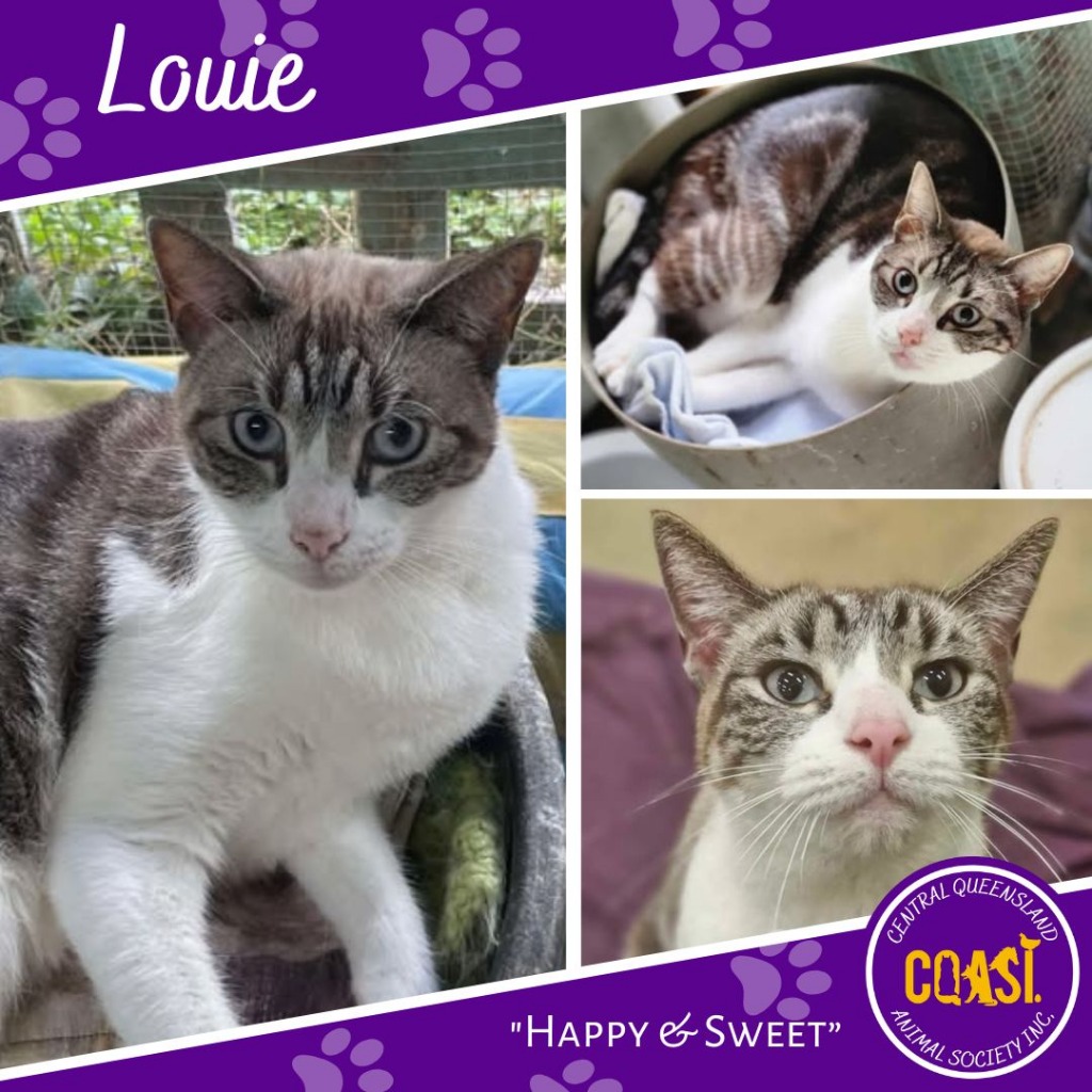 Hello! My name is Louie, and despite what my name or size might suggest, I'm actually a girl. I'm a confident feline, typically strolling right up to those I meet to let them know I’m ready for some affection, pats, cuddles, and food—any form of love you can offer, I’ll cherish and reciprocate with endless companionship.