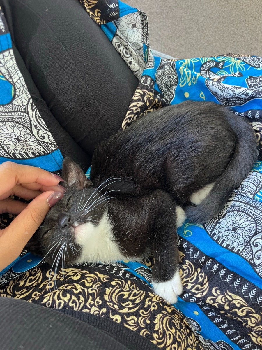 Azzy is a true cuddle enthusiast, always ready to snuggle up and share her warmth with you. Whether it's curling up in your lap for a cozy nap or nuzzling against your neck during quiet moments, she thrives on companionship and is eager to become your most devoted feline friend.