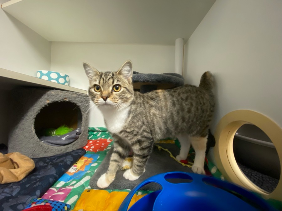This sweetheart arrived in our care shy and unsure of why she suddenly found herself in a shelter but with patience, kindness and love, Dwight has blossomed into an incredibly sweet and affectionate kitten who adores people and all the love and pats that they bring.